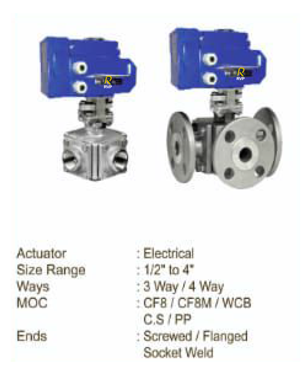 3 Way - 4 Way Ball value with Electrical Actuator