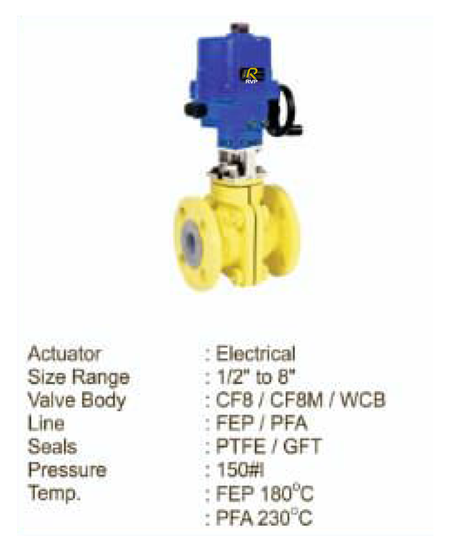 PTFE (FEP-PFA) Lined Ball Value with Electrical Actuator